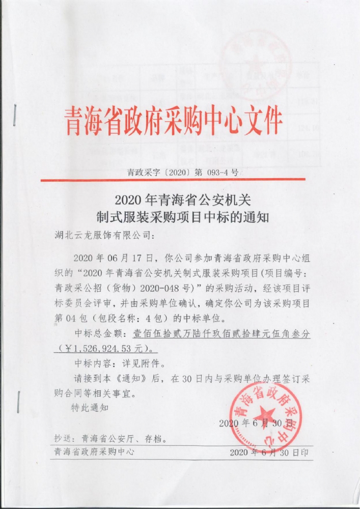 2020年青海省公安機關(guān)制式服裝采購項目
