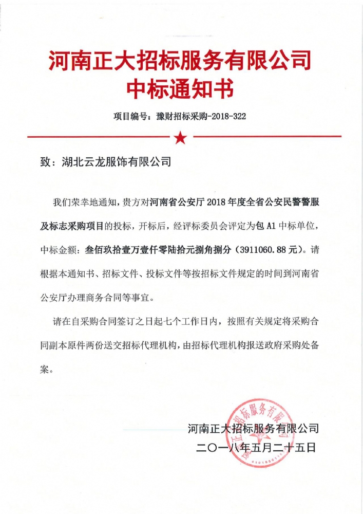 河南省公安廳2018年度全省公安民警警服及標志采購項目