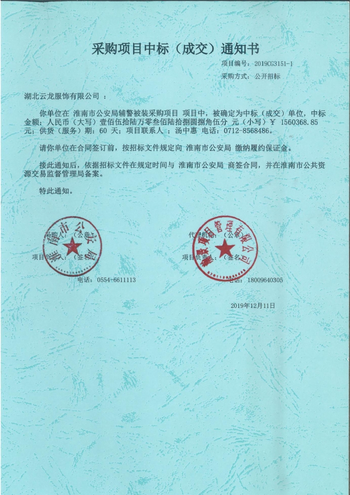 淮南市公安局輔警換發(fā)被裝采購項目