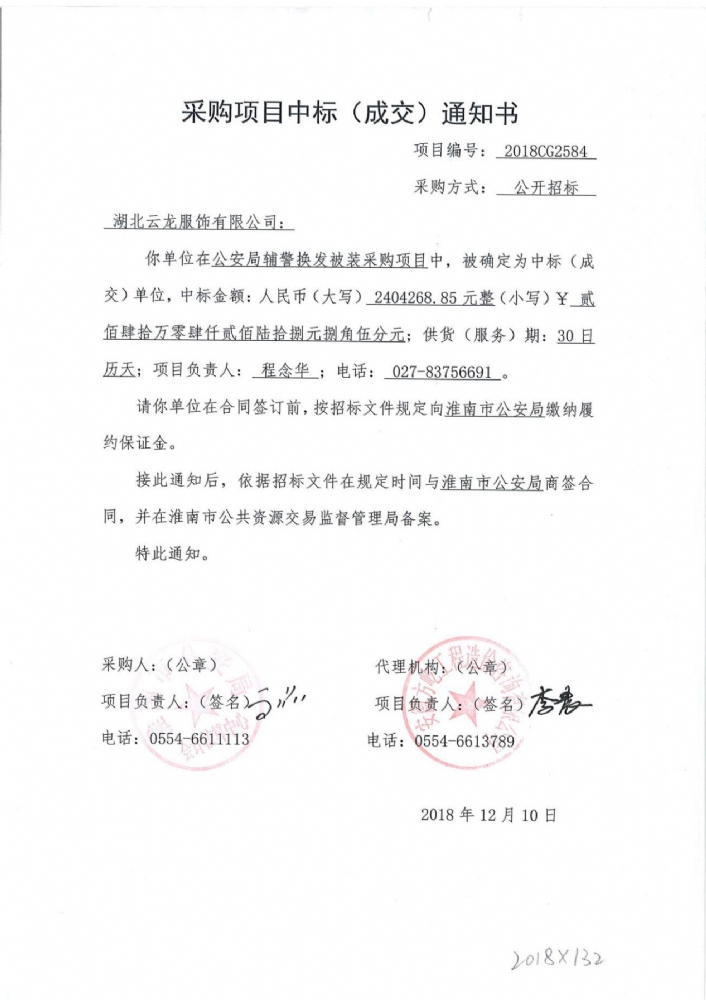 淮南市公安局輔警換發(fā)被裝采購項目